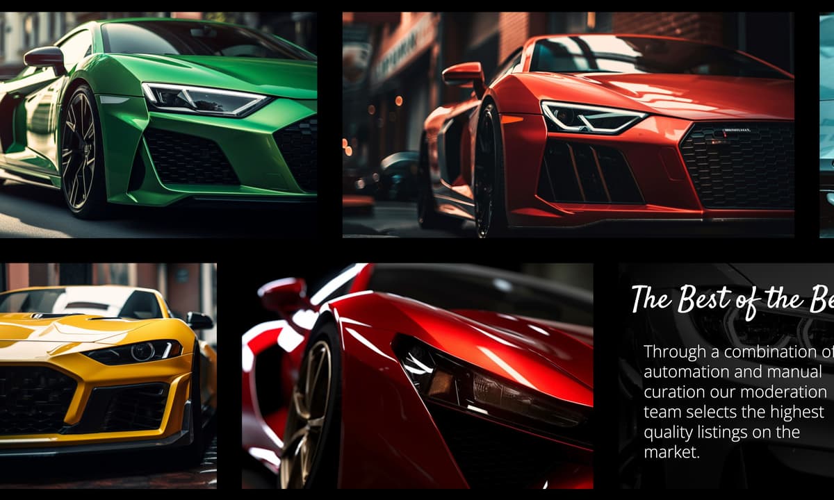This website template pairs a headline hero scene with a scroll-driven gallery where images shift sideways as users scroll. Built for exotic and rare car listings, it also works beautifully for any curated, high-end catalog.